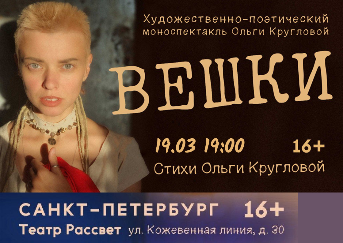 19.03.2026 в 19.00 в Санк-Петербурге пройдет поэтический спектакль «Вешки»!