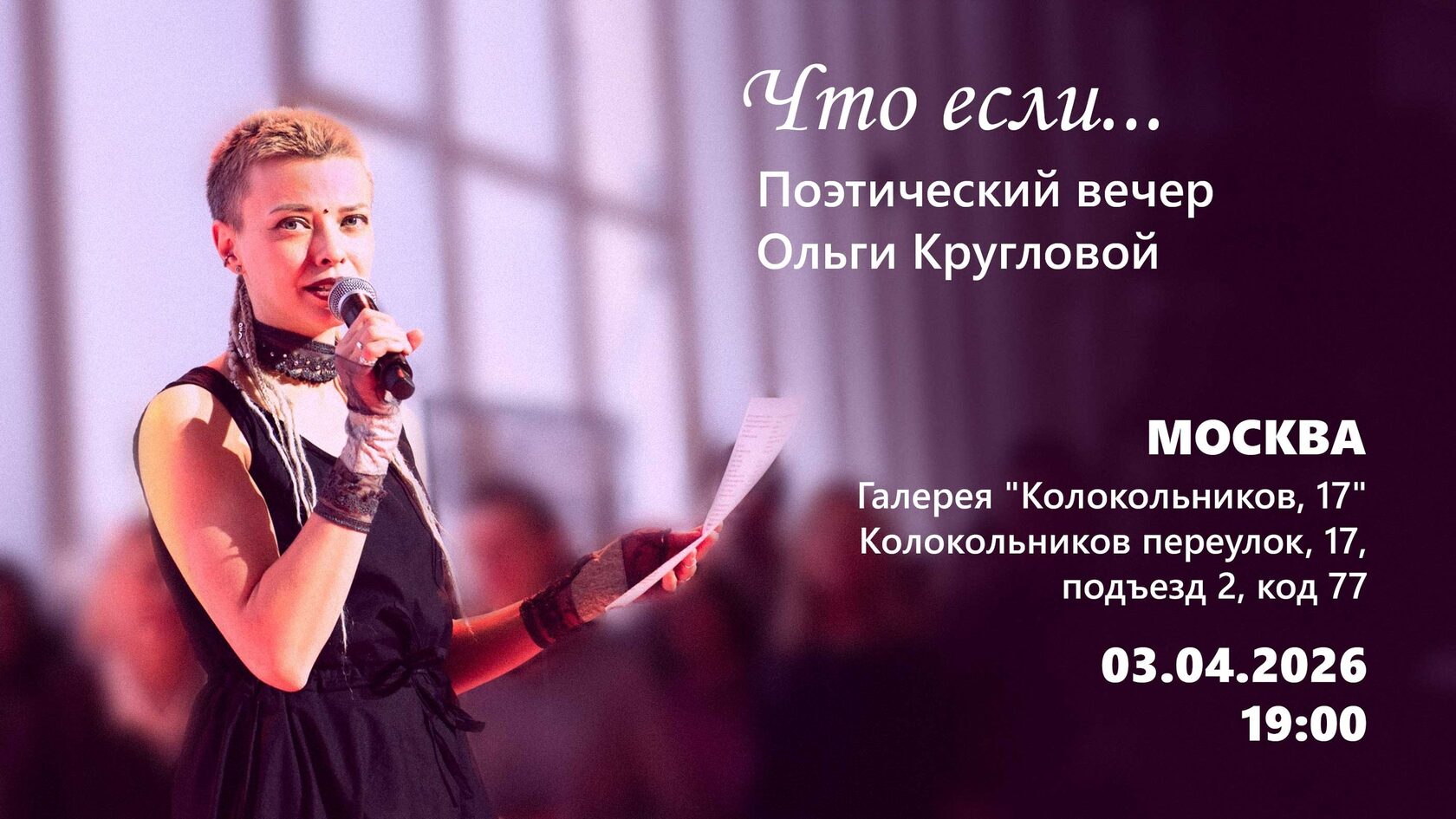 03.04.2026 в 19.00 в Москве пройдет поэтический квартирник «ЧТО ЕСЛИ...»!